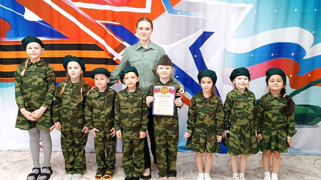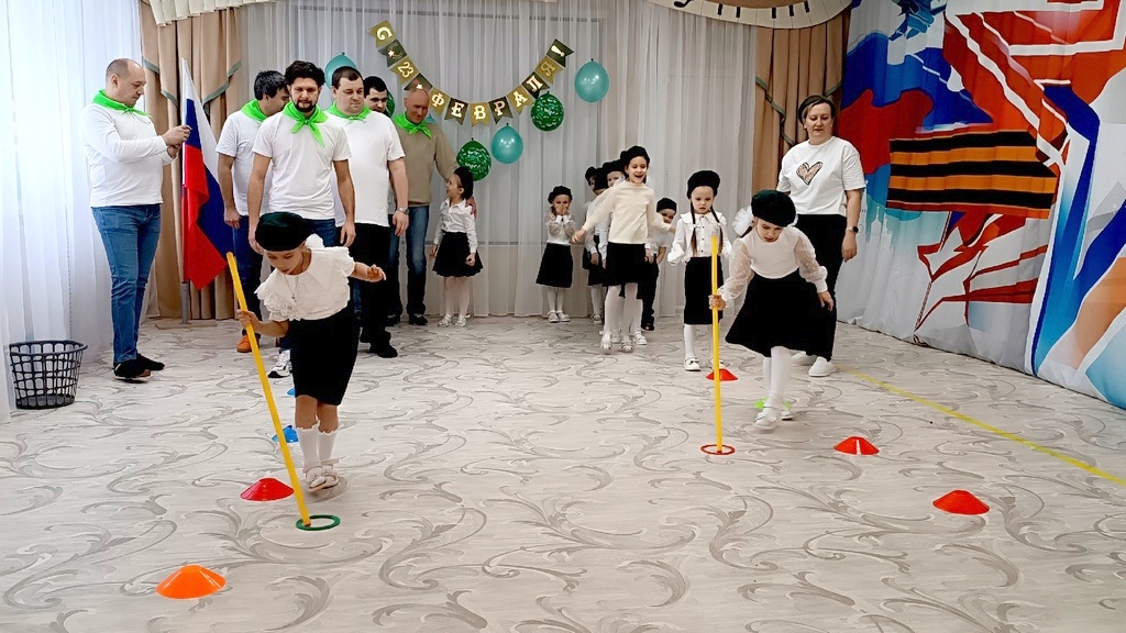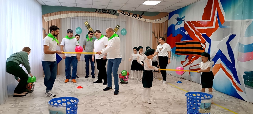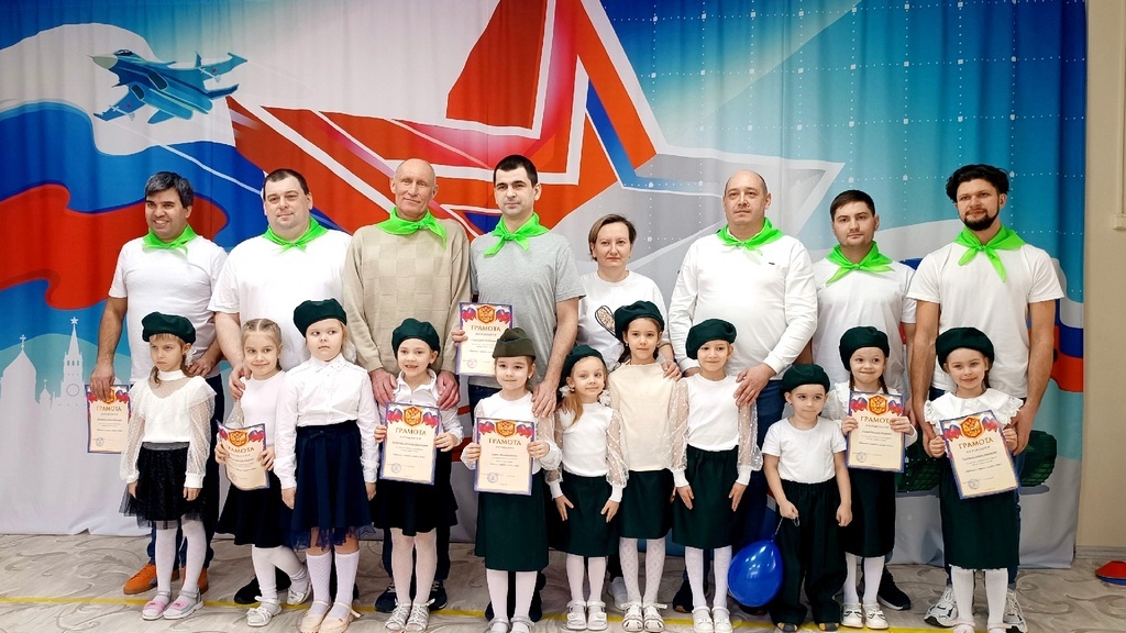 Отряды «Десантников», «Пограничников», и команда пап и дедушек продемонстрировали свои строевые навыки, умение быть сплочённой командой. Все команды принимали участие в эстафетах и конкурсах: «Сбей вражеский самолет», «Передача боеприпасов», «Собери «автомат», «Викторина для пап».