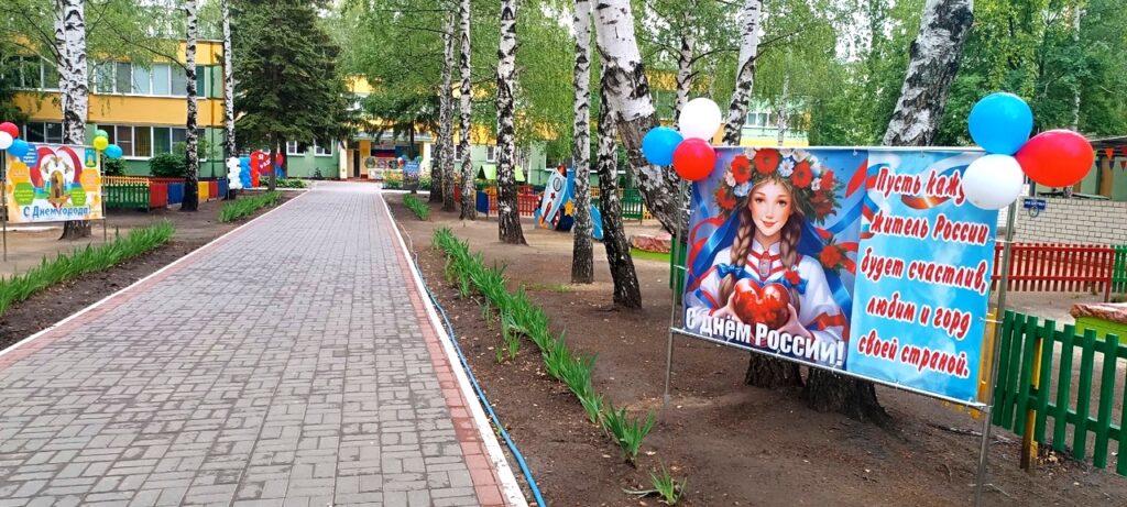В преддверии замечательного и важного праздника Дня России и всеми любимого Дня нашего любимого города Тамбова и дети и взрослые принимают активное участие в праздничных мероприятиях. В детском саду «Радуга» появились фотозоны и поздравительные баннеры, которые украсили территорию детского сада и создали праздничное настроение. Ребята и родители с большим интересом рассматривают их и делают на их фоне фотографии.