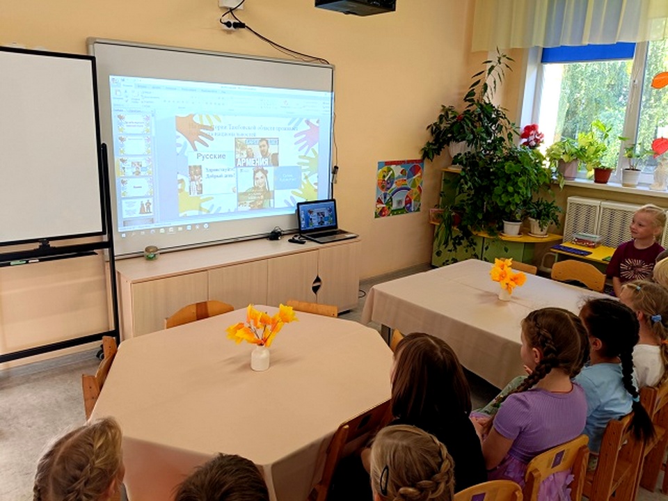 В преддверии дня «Дружбы народов Тамбовской области», воспитатели с ребятами говорили о нашей области, о нашем городе, о том что на нашей тамбовской земле живут люди разных национальностей.