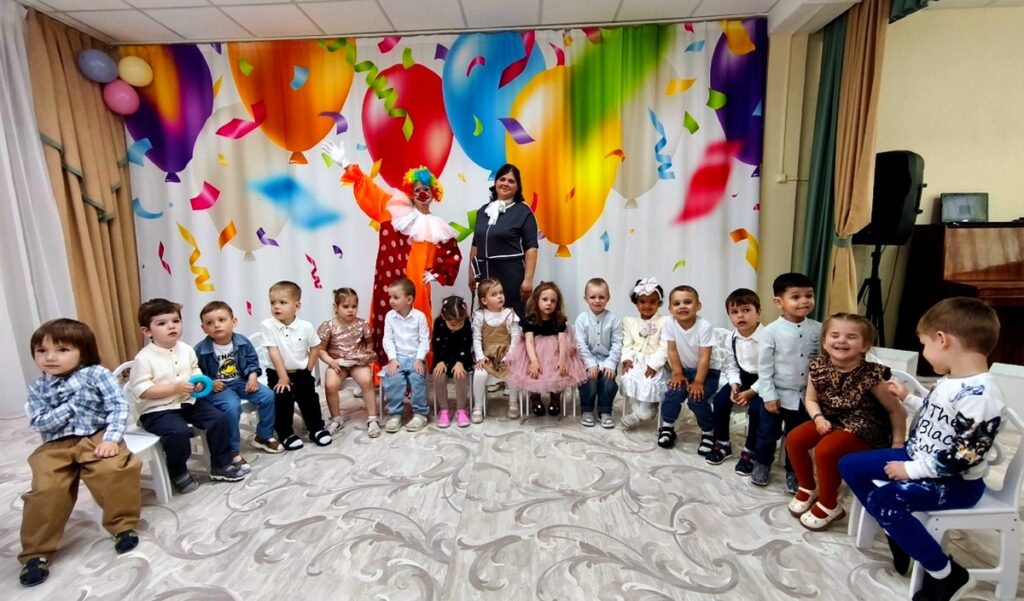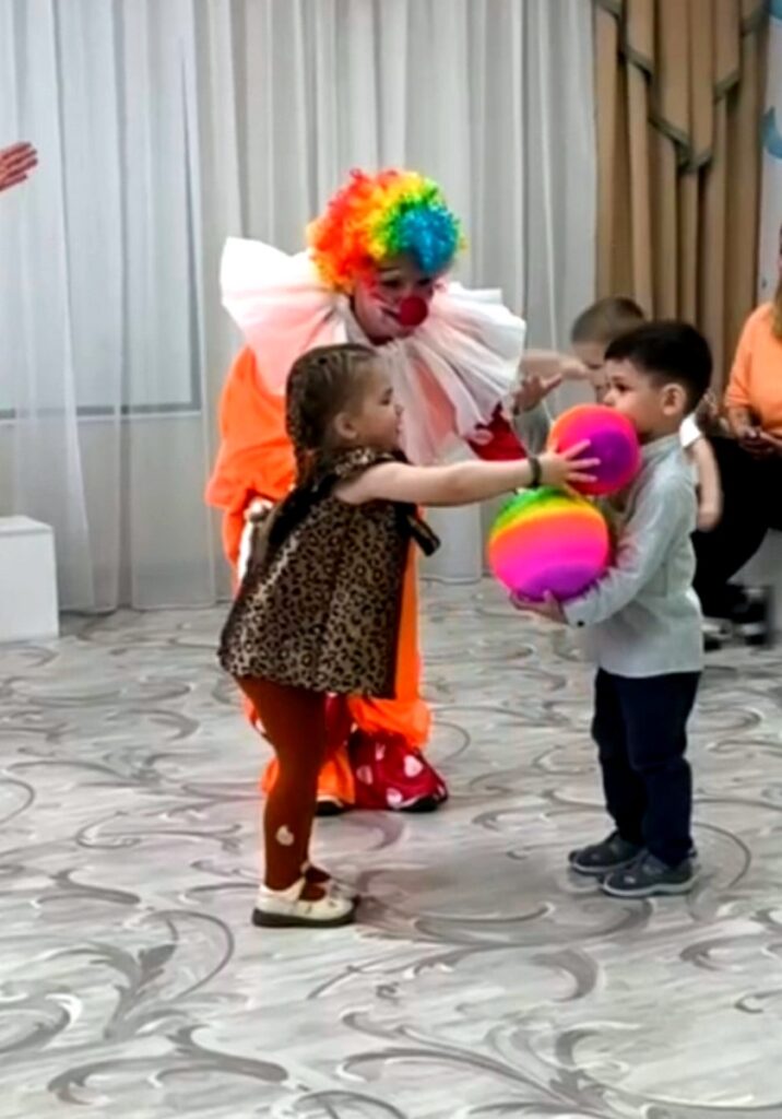 Сегодня в нашем детском саду прошло традиционное значимое и очень эмоциональное событие – мини-выпускной «Ступени взросления» для самых маленьких жителей «Страны «Радуга». Дети Доброградов «Капелька» и «Солнышко» подросли и готовы перейти на следующую ступеньку взросления в «Дружбограды». На празднике ребята учили клоуна Клёпу играть с разноцветными шариками и находить им свои домики по цветам, кормить большого и маленького зайчиков морковками разной величины. А ещё ребята очень весело пели песни и танцевали. Клёпа в благодарность подарил всем ребятам сюрпризы и провёл игру с мыльными пузырями, что вызвало восторг у детей и взрослых.